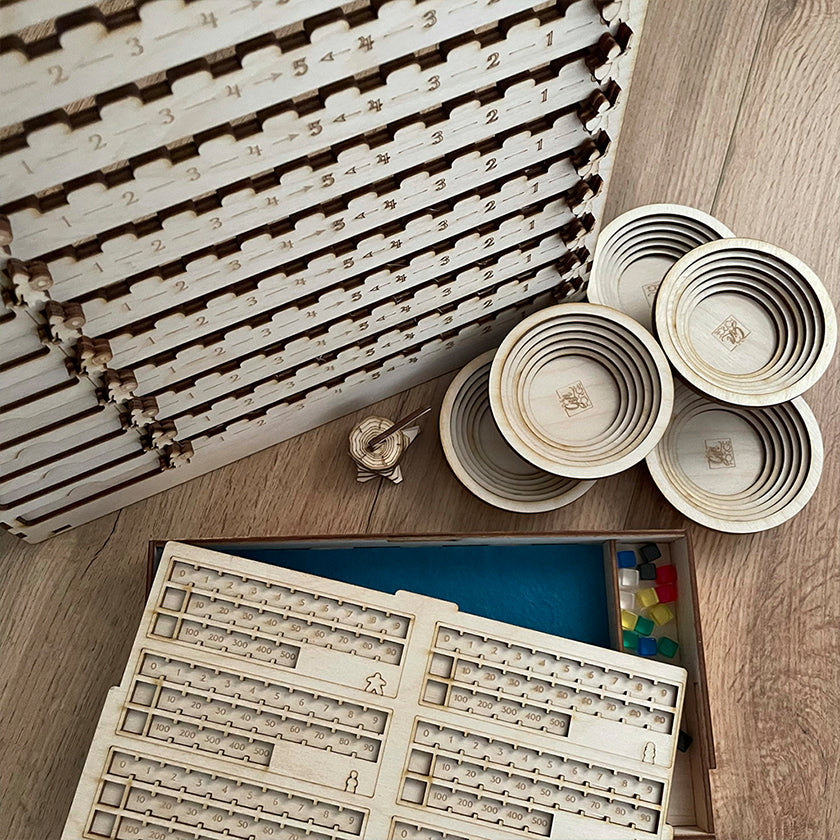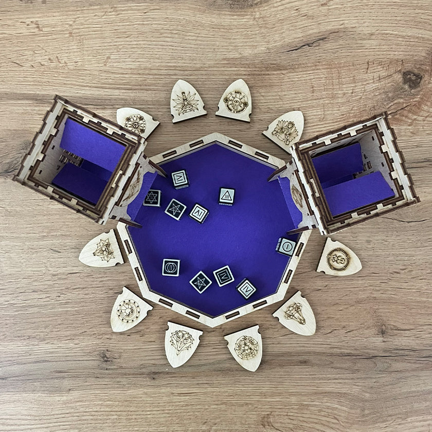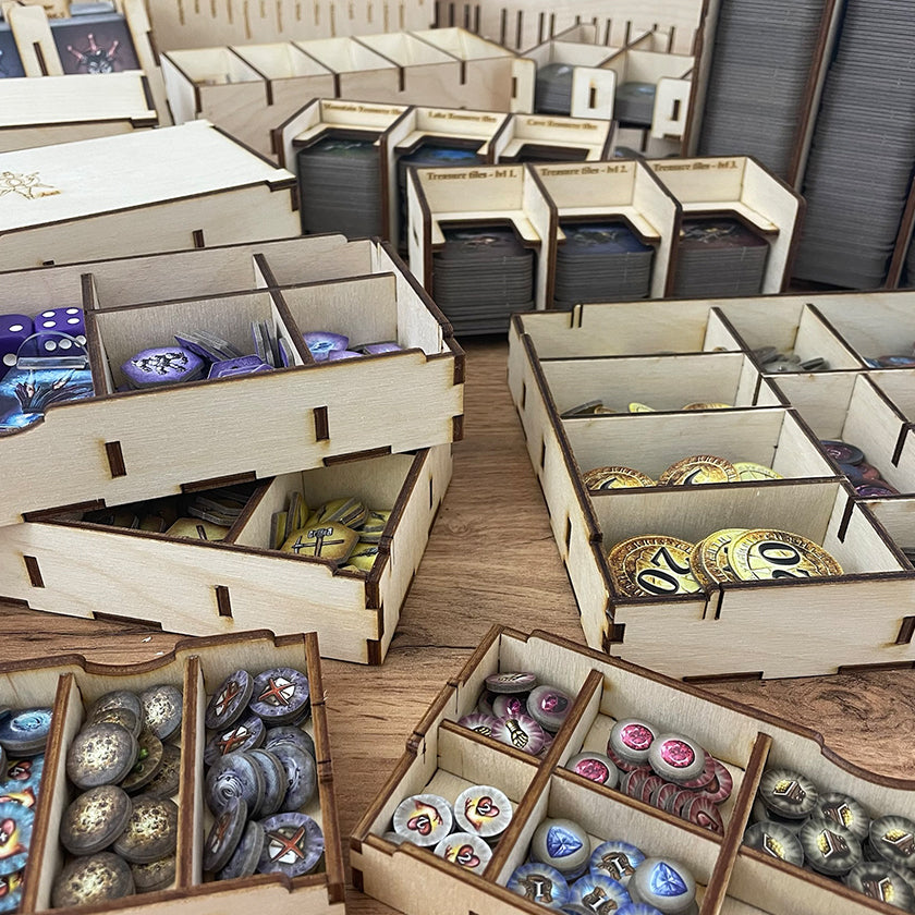 Want to keep your board games well-organized? Or do you need a cool dice tower? Or maybe you want to spice up your table presence with a few accessories? Then you've come to the right place! Take your pick from our range of products and choose extra engraving on the marked products to make your order even more unique!